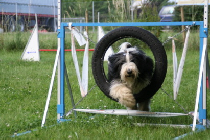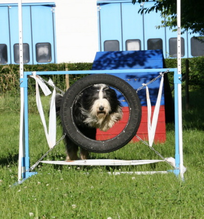 Stellt die Trainerin den Reifen aus Versehen mitten in den Parcours, teilt der Beardie von Welt gleich lautstark mit, dass er falsch steht!