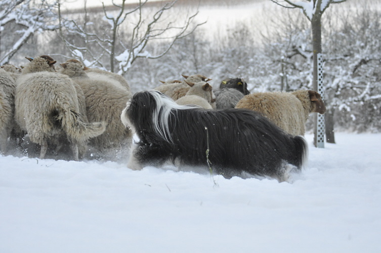 Am 18.12.2010 besuchte uns Sandra mit ihrem Border Collie Sam und machte wunderschöne Bilder von unseren Beardies und unseren Schafen.